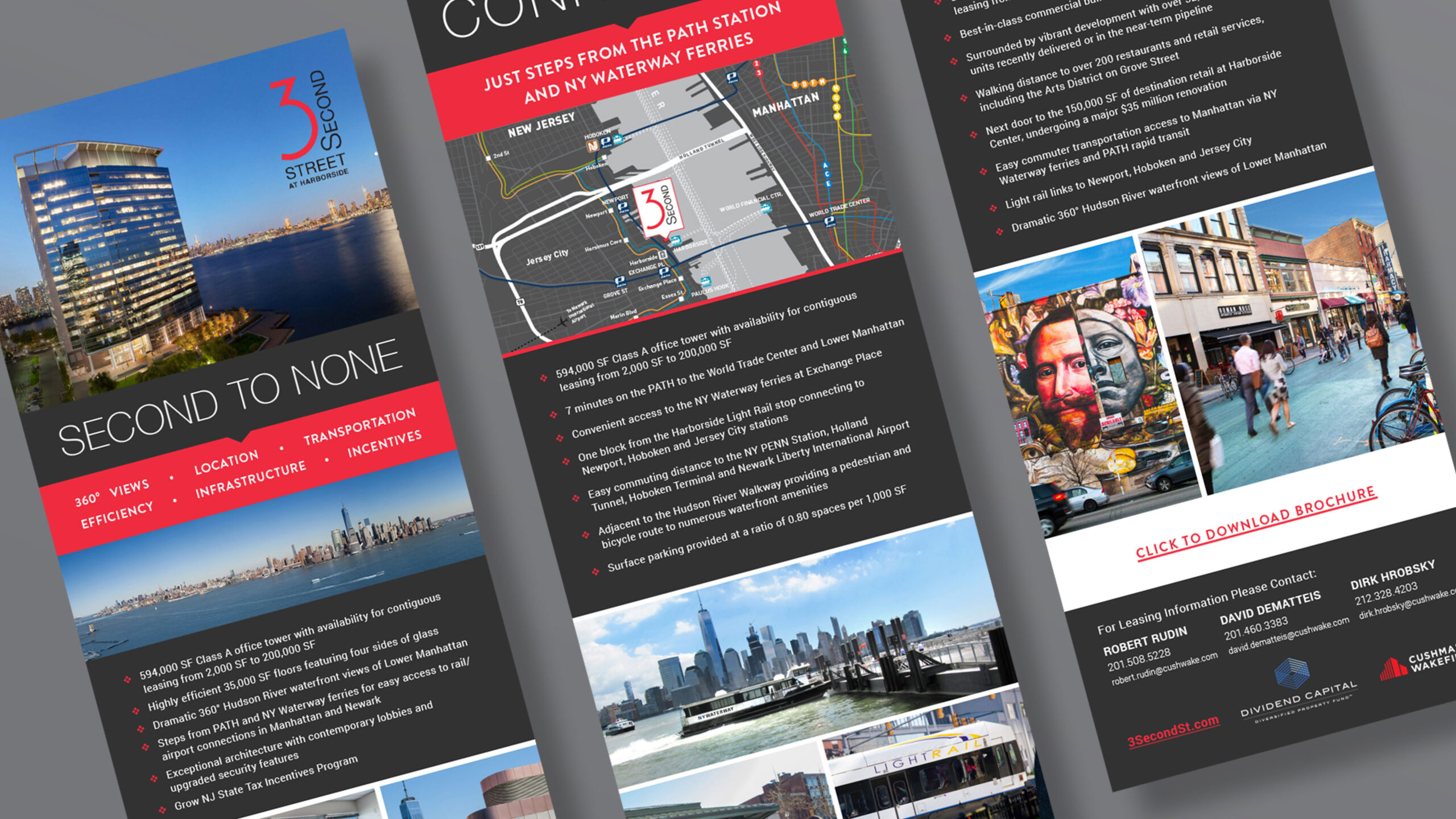 MTG named and repositioned 3 Second Street, a Class A office tower located along the Jersey City waterfront, with the goal of commanding top market rents. We created a dynamic leasing and marketing campaign with a consistent message and design to generate a lasting impression in the minds of brokers and potential tenants. MTG positioned 3 Second Street at the center of the vibrant Jersey City waterfront showcasing the high-end contemporary office space while highlighting its close proximity to Manhattan.