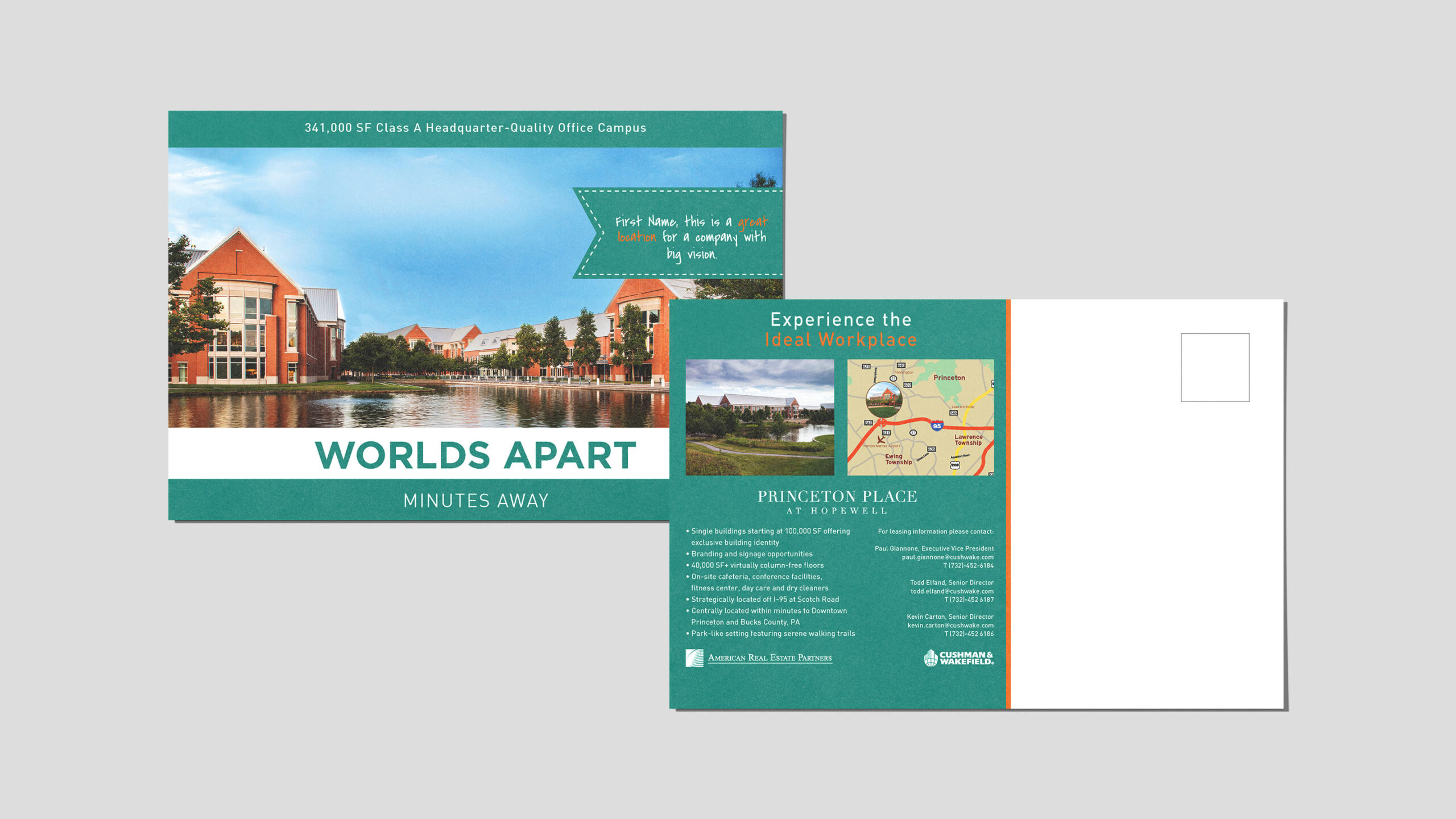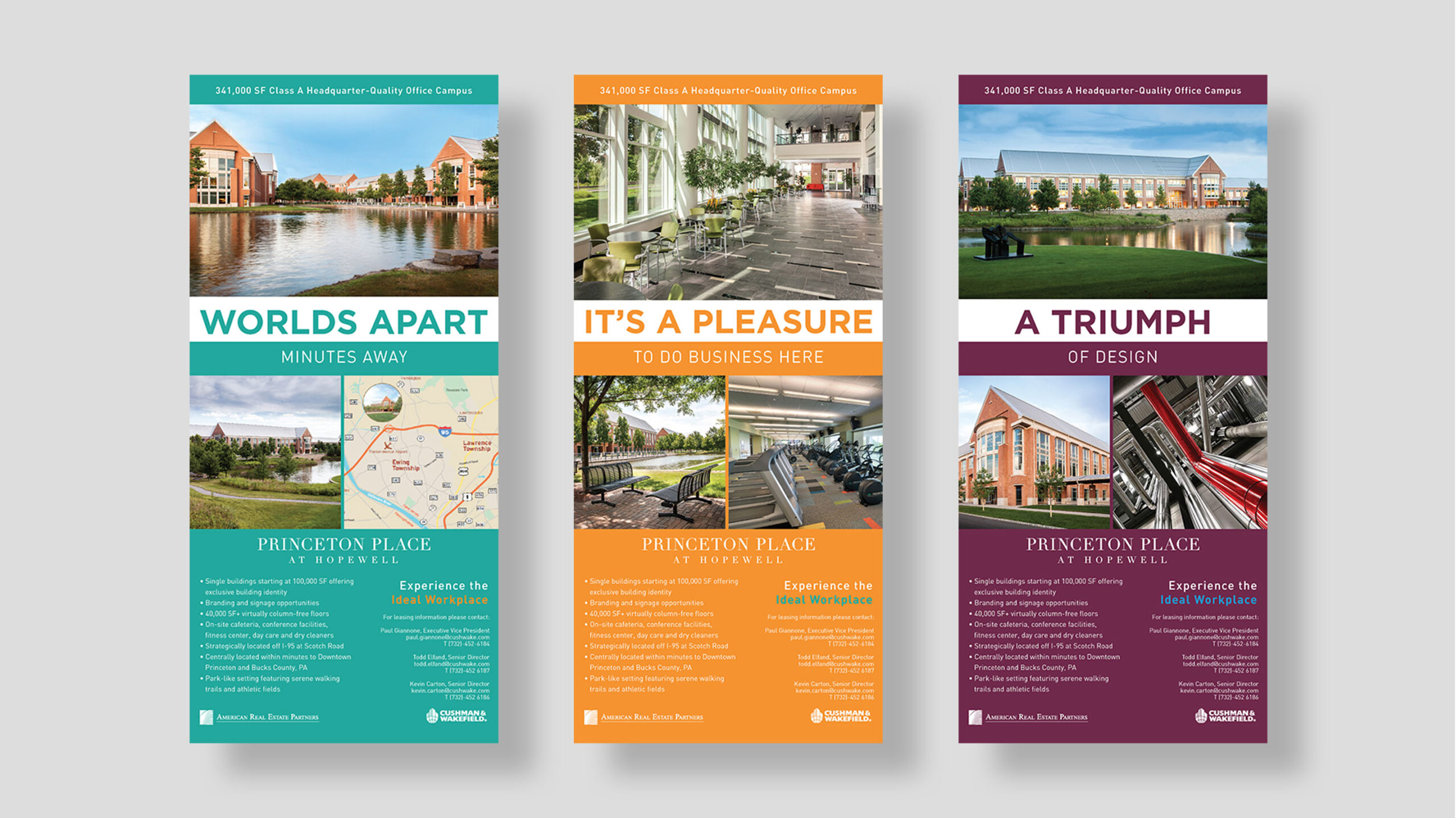 American Real Estate Partners and Cushman & Wakefield hired MTG to brand and market three buildings that were a part of the Merrill Lynch corporate campus in Hopwell, New Jersey. We branded the 300,000 SF amenity-rich headquarter-quality leasing opportunity as Princeton Place at Hopewell positioning it in the Princeton office market. MTG developed a creative campaign around the concept of a campus within a campus including, print, digital, environmental and interactive media. The property is now 100% leased.